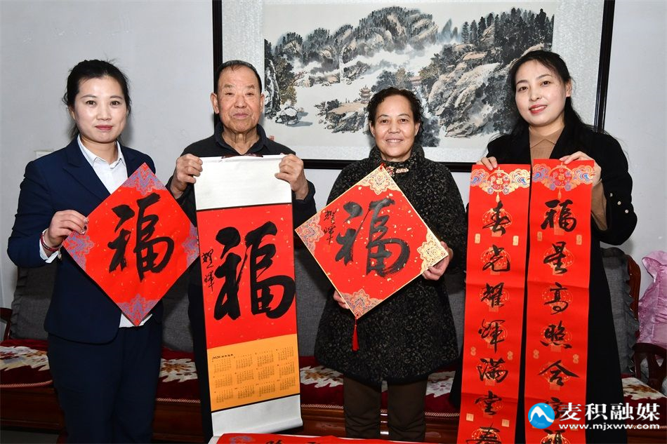 活动现场墨香四溢、暖意融融,天水好人、麦积区十佳优秀志愿者、天河书院文艺志愿服务队队长窦耀辉现场挥毫泼墨,红纸舒展间,一副副寓意吉祥、笔力苍劲的春联与“福”字接连完成。“福到门庭梅吐艳,马驰道路柳生烟”“骐骥迎春开景运,邻里同心筑安康”,一对对春联饱含对马年新春的美好期盼,字里行间满是吉祥如意、阖家安康的真挚祝福,让居民近距离感受到中华优秀传统文化的独特魅力。